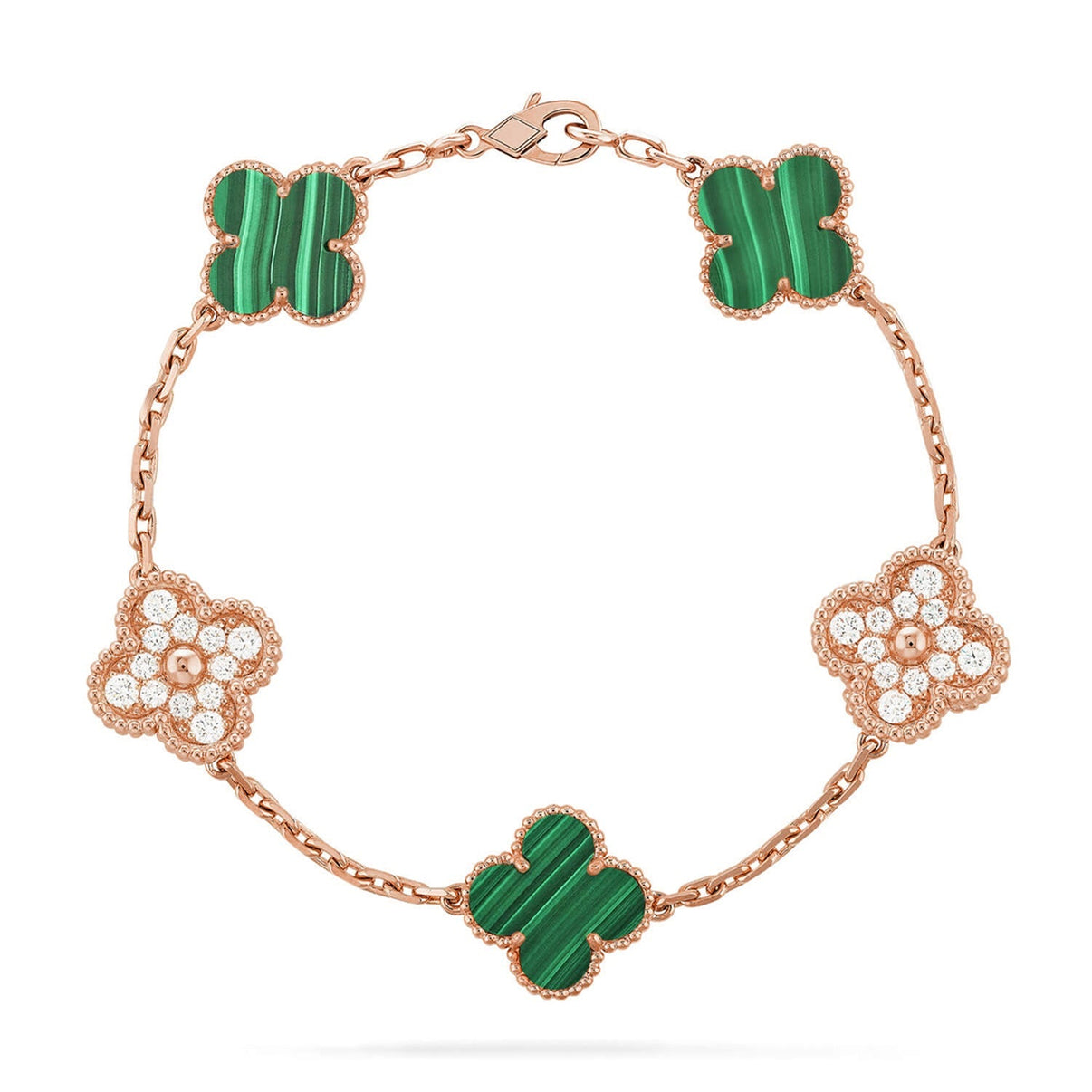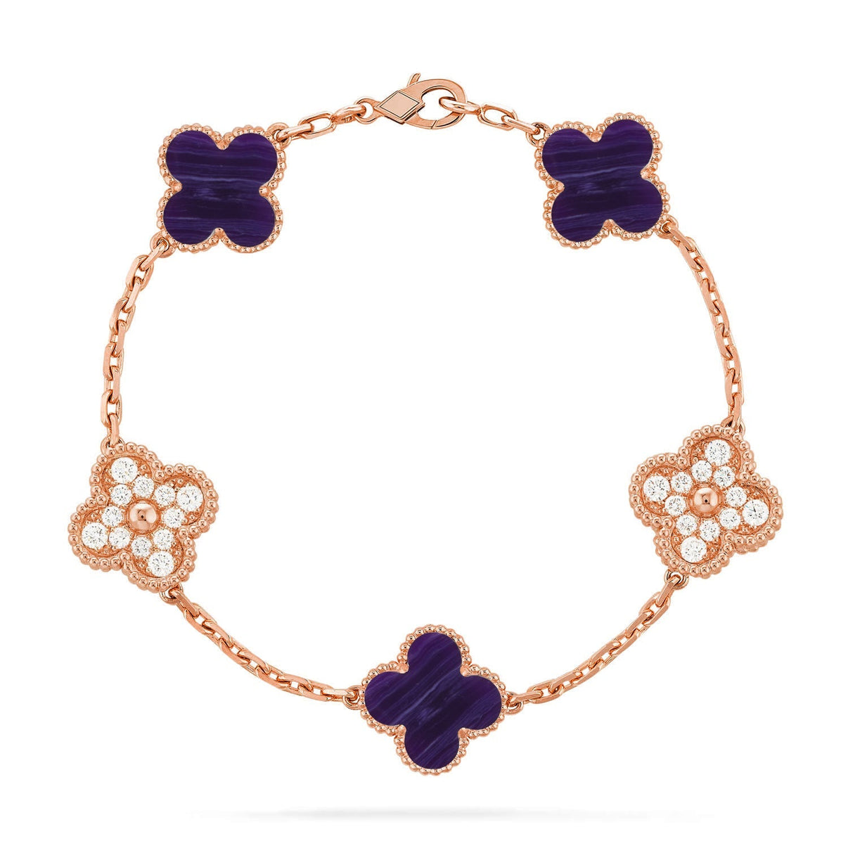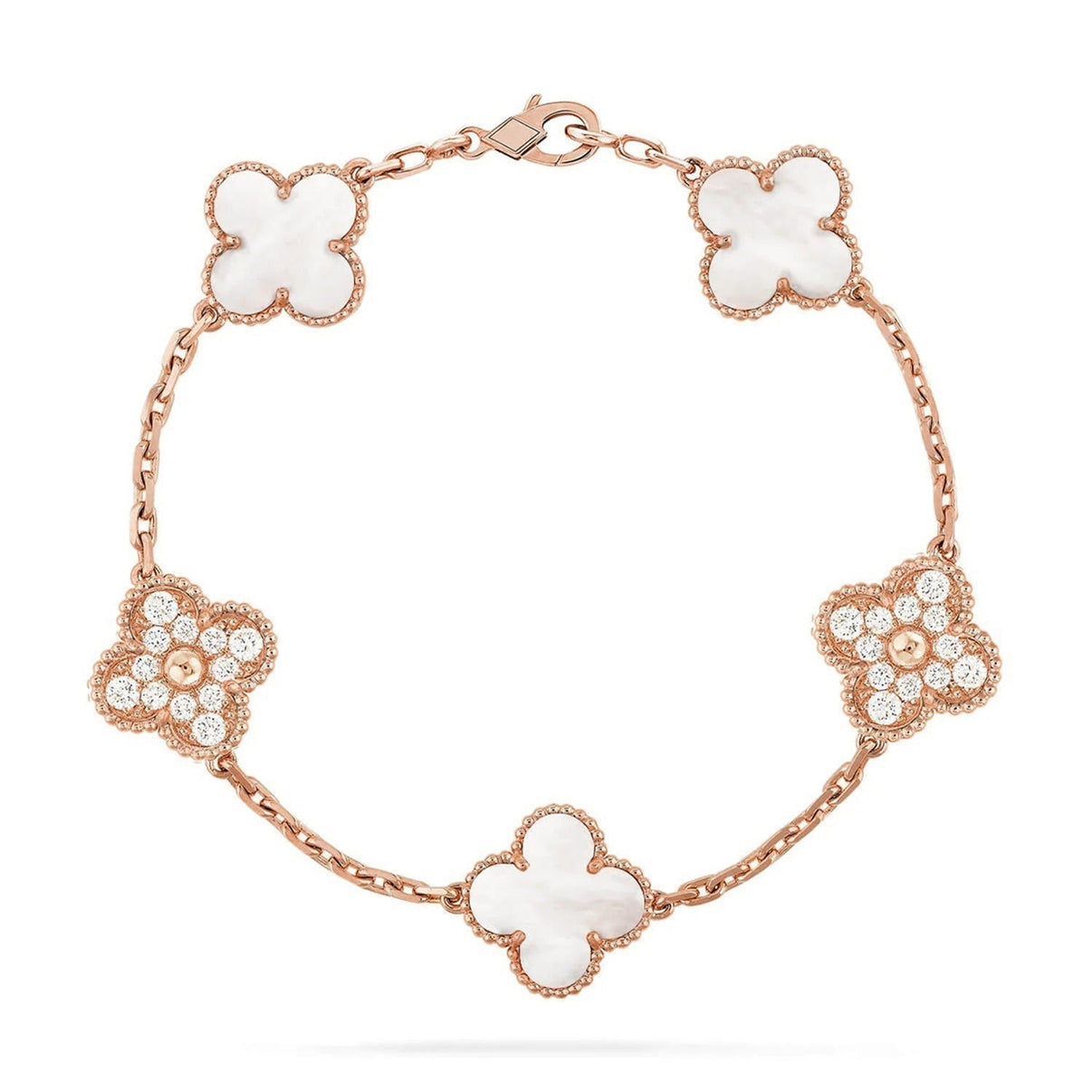 [Luna Brilliance]THICK GOLD-PLATED CUSTOM SIZE EDITION CLOVER DIAMOND ROSE GOLD BRACELET COLLECTION,5 MOTIFS