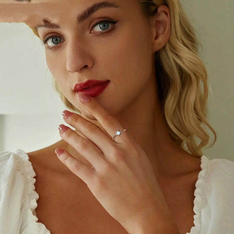 [Material] 925 Sterling Silver+Pavé Setting CZ+Larimar+plated White Gold