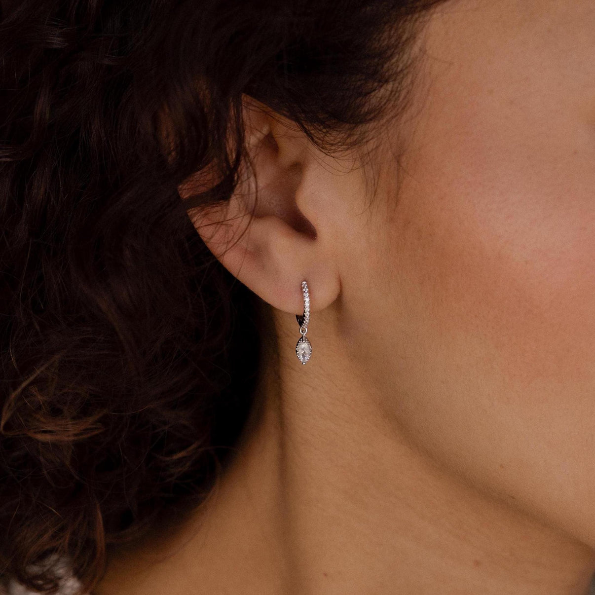 Designed to dazzle, our Marquise Pave Drop Huggies combine the brilliance of pavé diamonds with the sophisticated elegance of a marquise-cut drop. Perfect for weddings, anniversaries, or simply adding a touch of glamour to your everyday style.